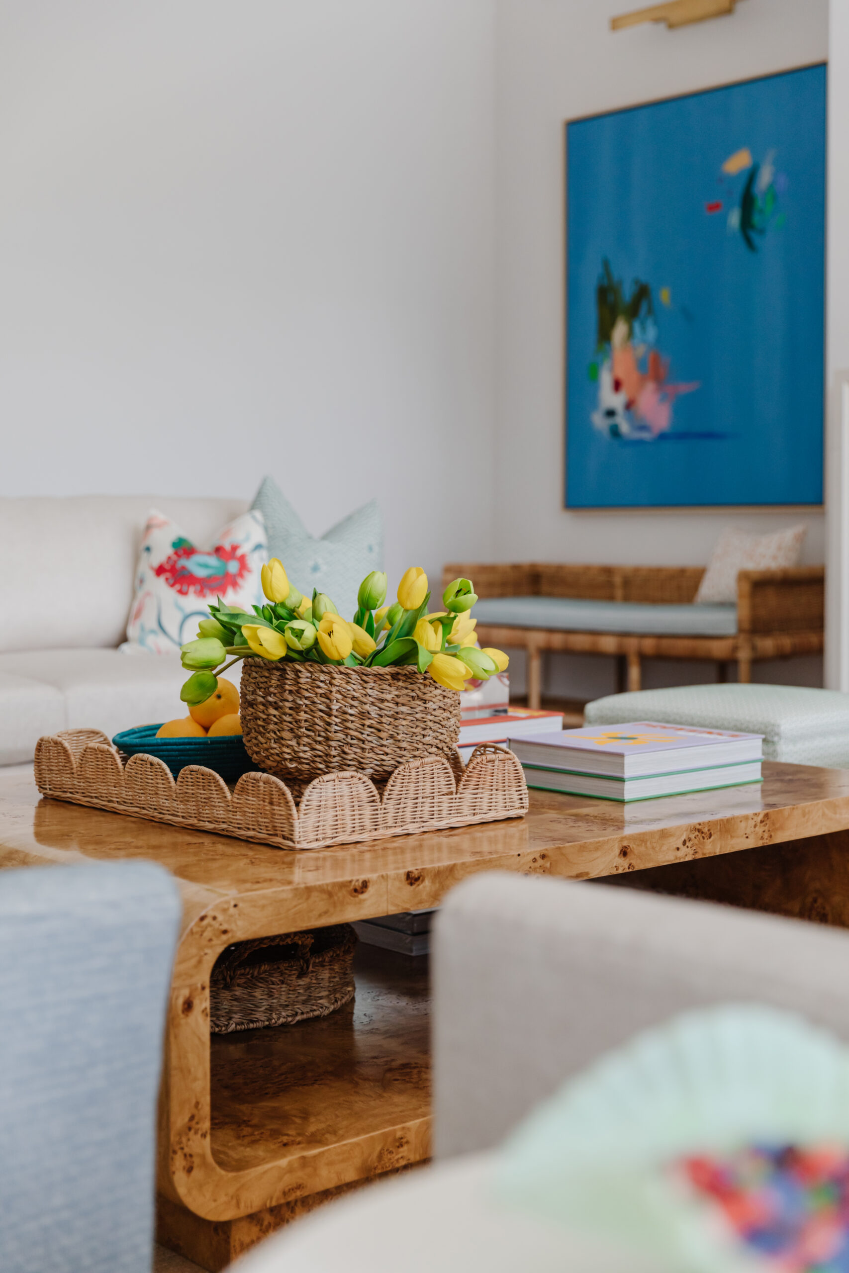 Rattan is a natural material that adds warmth and texture without feeling heavy. Placing a rattan tray on your coffee table is a simple way to corral decorative items while keeping the surface airy and breathable. It’s perfect for holding candles, books, or small accessories and immediately elevates the look of your living space.