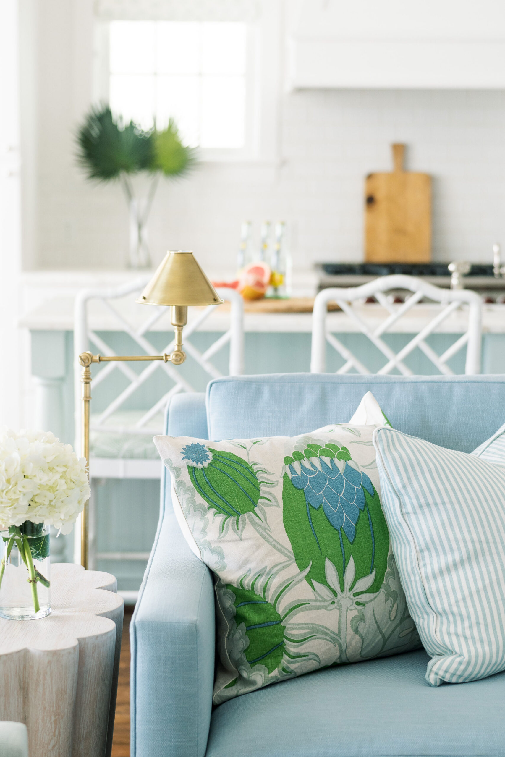 One of the easiest ways to give your main living spaces a spring refresh is by swapping out pillows. Mix light and bright colors with fun patterns on your neutral chairs and sofas to instantly lift the mood of a room. Layering different textures and sizes creates visual interest and keeps your space feeling collected and timeless.